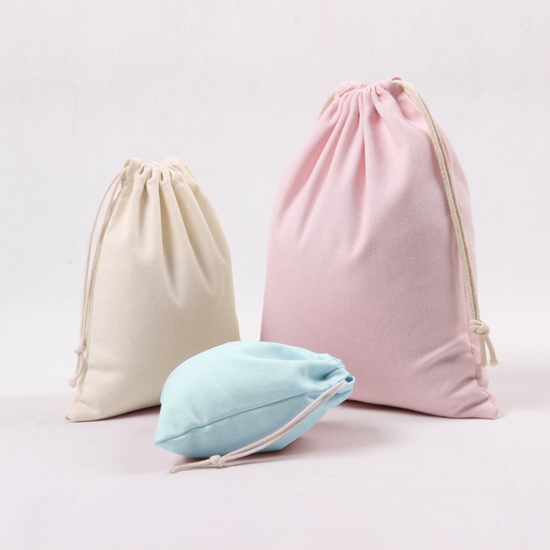 Wholesale Portable Reusable Gift Plain Blank Canvas Cotton Double String Dust Drawstring Bags With Printed Logo