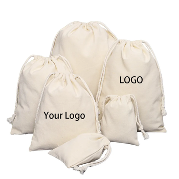 Custom Logo Printed Eco Friendly Organic Muslin Cotton Pouch Promotional White Calico Cloth Packaging Canvas Drawstring Bag