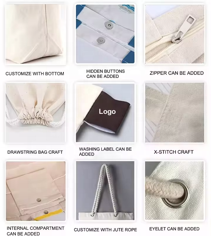 Custom Large Canvas Cotton Tote Bag Custom Printed Logo Own Design With Pocket And Zipper