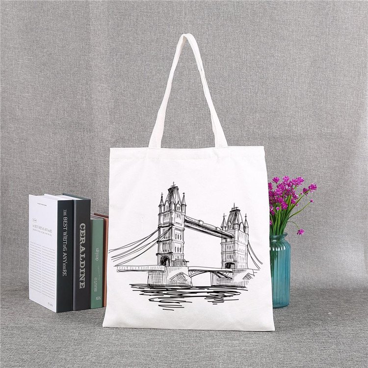 Custom Logo Printed Recyclable Plain Cotton Canvas Shopping Tote Bag