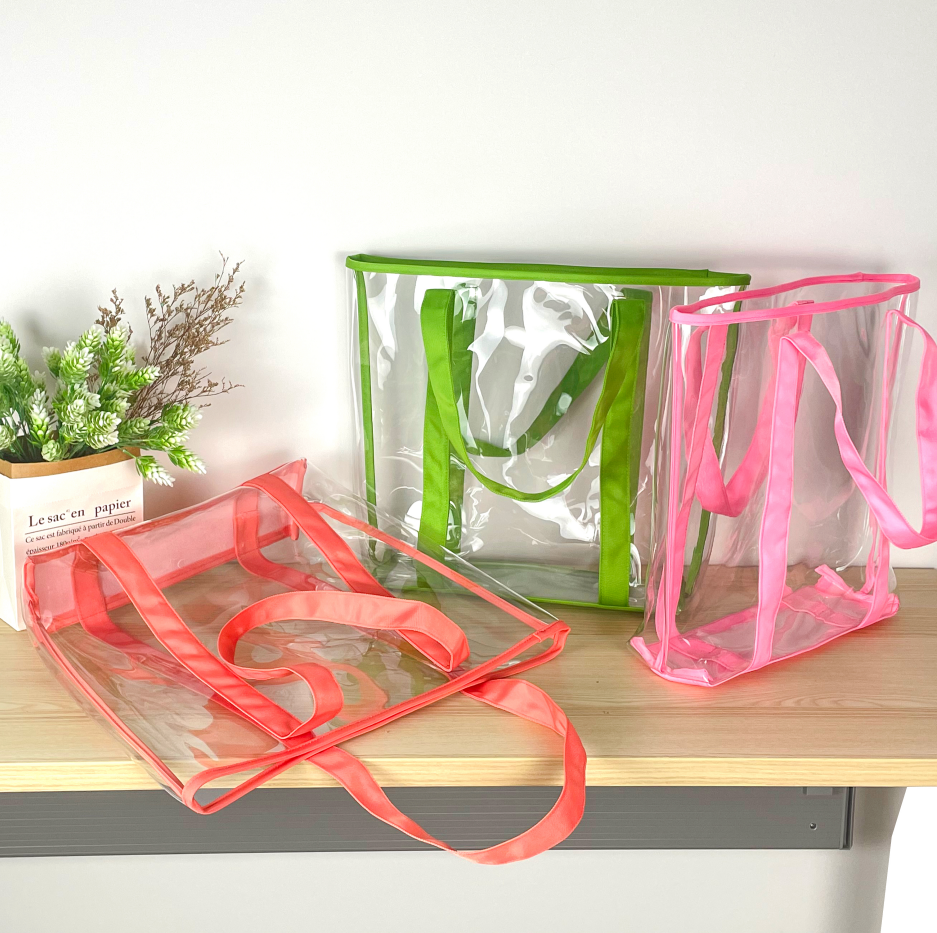 Customized Logo Colors Design Travel Large Capacity Transparent Clear Waterproof PVC Shopping Beach Tote Bag