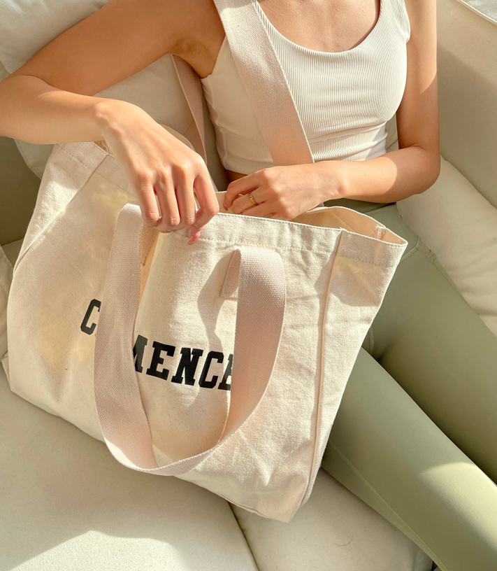 Wholesale Custom Stylish Large Commercial Canvas Tote Bag Own Design Cotton Bag With Pocket And Zipper Custom Printed Logo