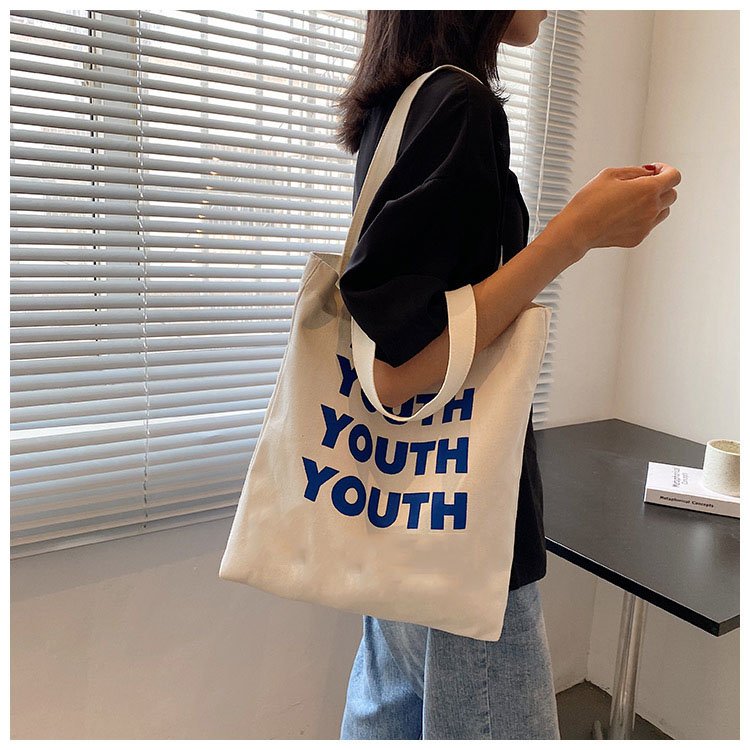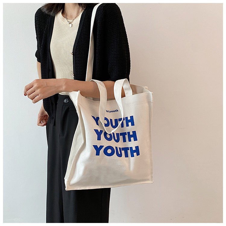 New Style Fashion Eco Friendly Shopping Women Grocery Canvas Tote Bag with Pocket Cotton Tote with Bags Custom Printed Logo