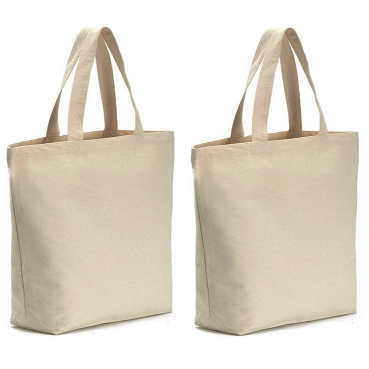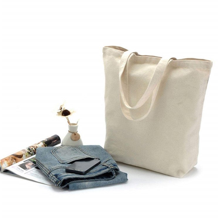 Custom Print Logo Own Design Reusable Plain Pocket And Zipper Cotton Large Shopping White Canvas Tote Bag