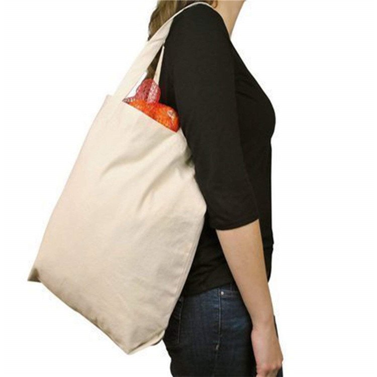 Large Capacity Causal Reusable Solid Color Shopping Canvas Shoulder Bag Canvas Tote Bag