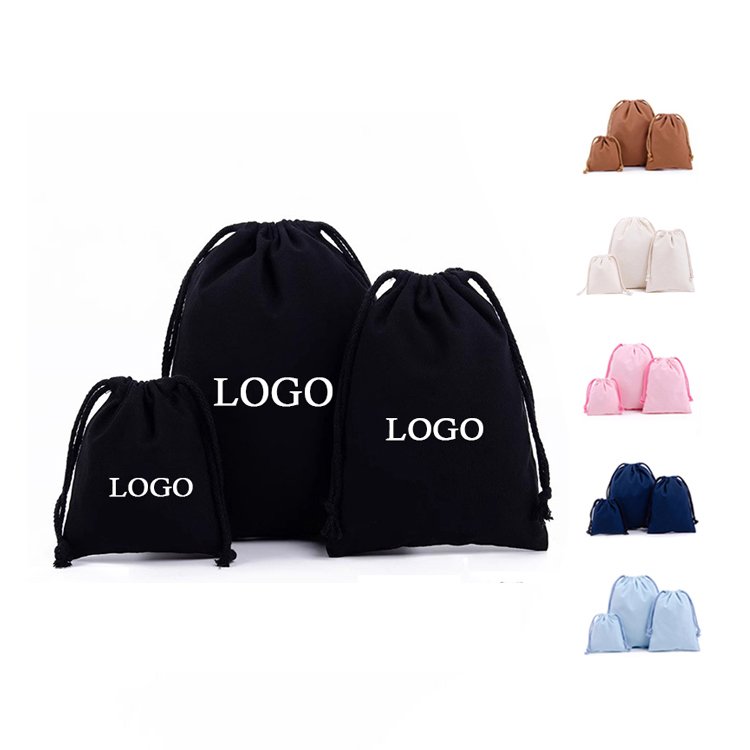Wholesale Personalized Small Recycled Colorful Cloth Canvas Custom Cotton Dust Shoe Drawstring Bag Packaging With Logo