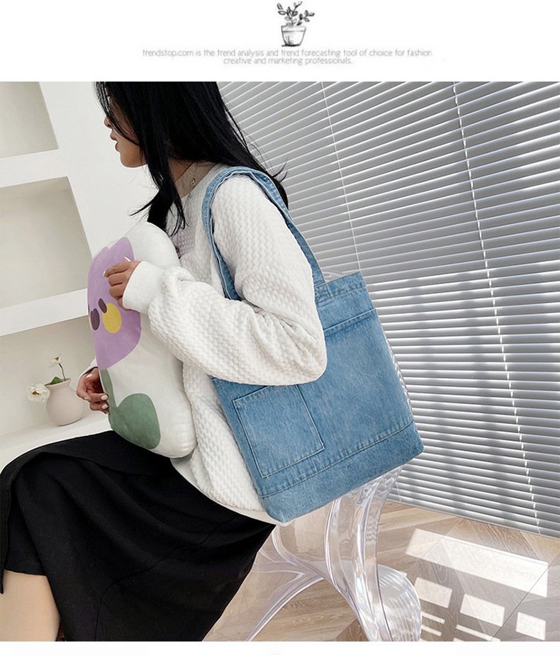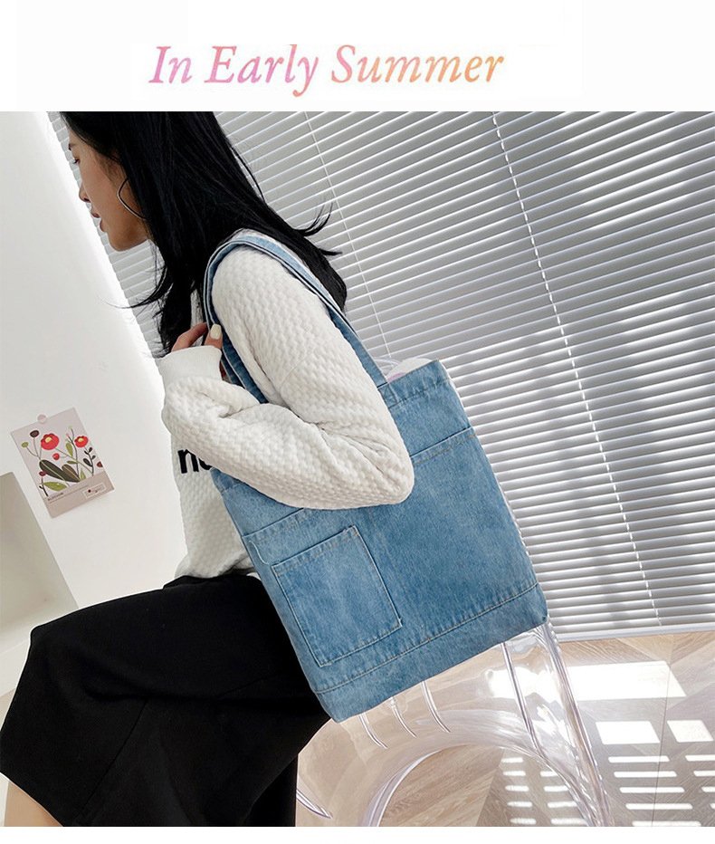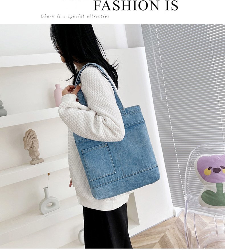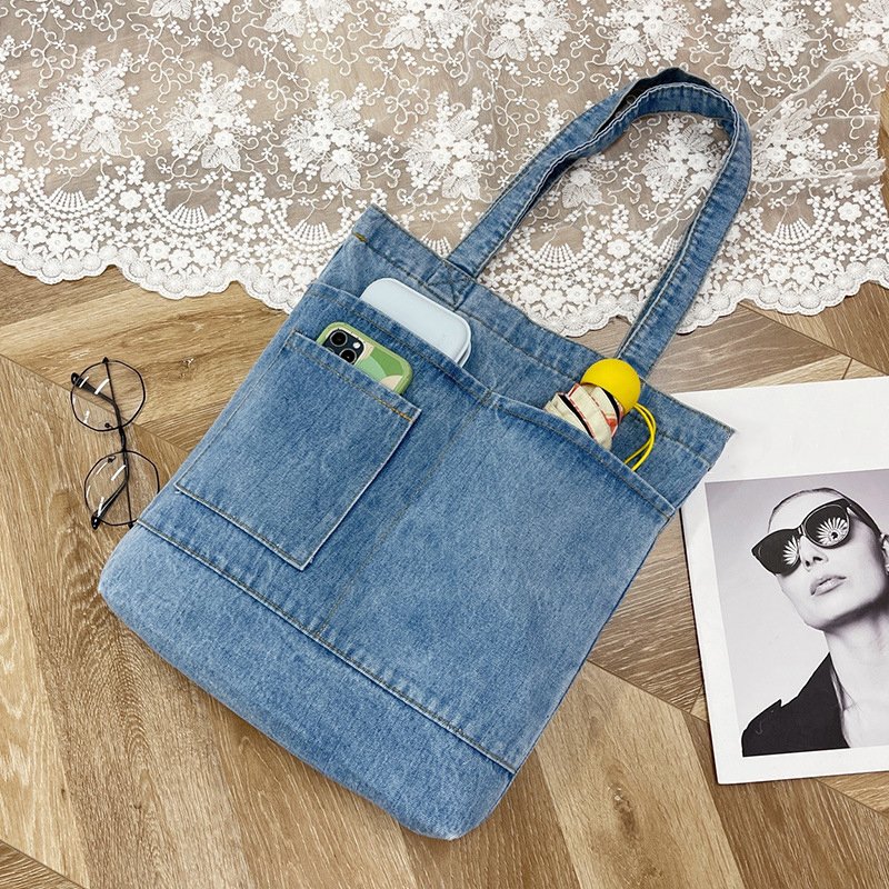 Hot Selling Reusable Custom Logo Design Supermarket Gift Denim Fabric Casual Style Large Capacity Shopping Tote Bag