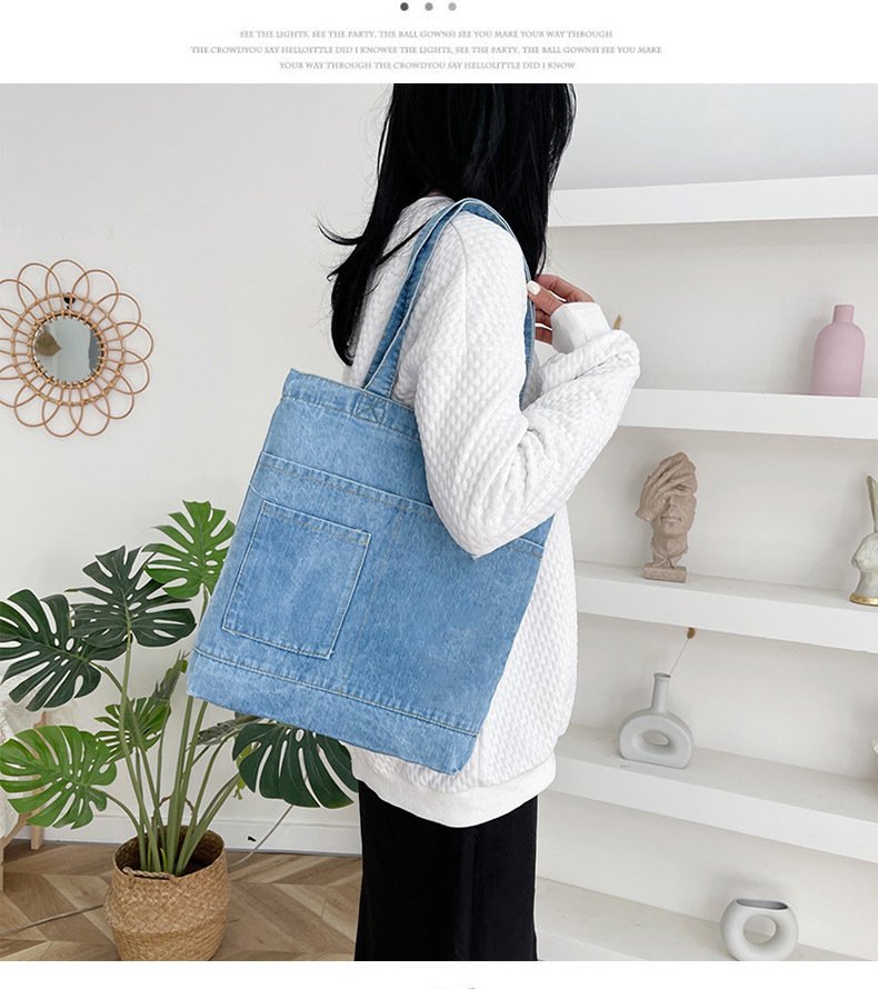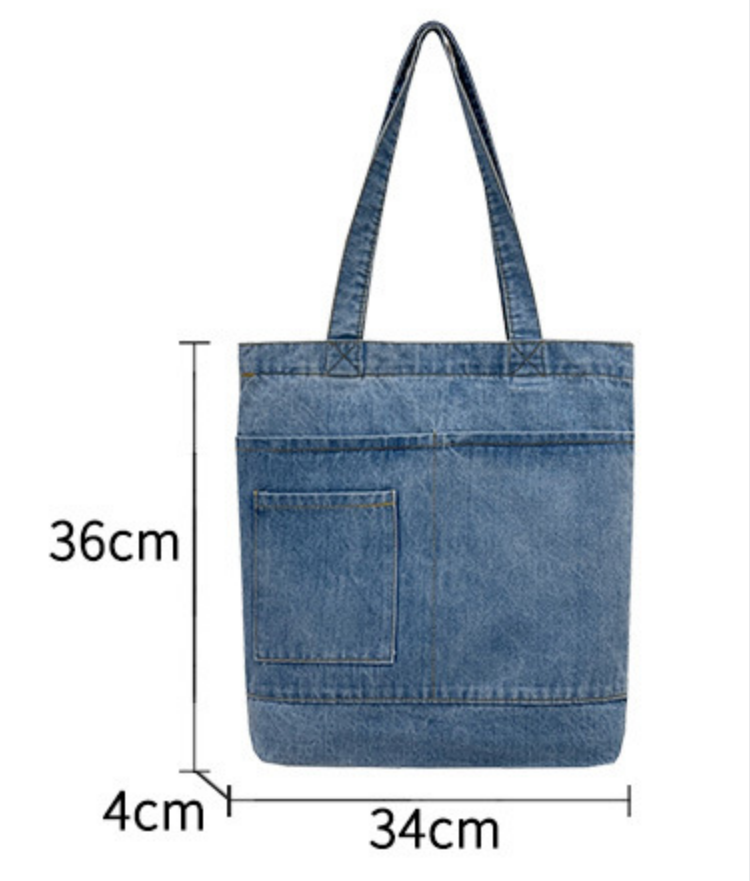Item Name | Hot Selling Reusable Custom Logo Design Supermarket Gift Denim Fabric Casual Style Large Capacity Shopping Tote Bag |