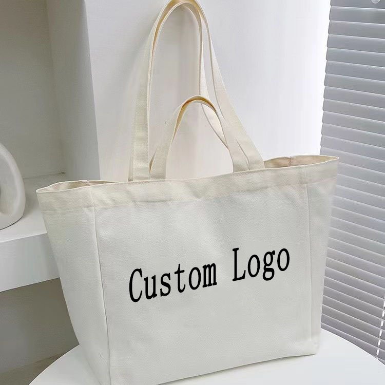 Custom Large Canvas Cotton Tote Bag Custom Printed Logo Own Design With Pocket And Zipper
