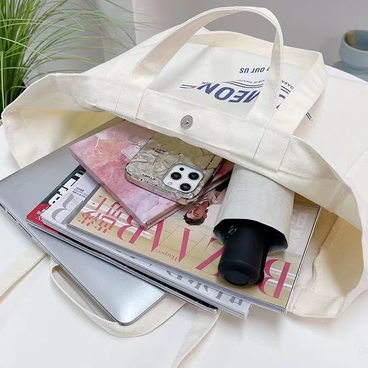 Wholesale Custom Logo Print Reusable Foldable Shopping Messenger Canvas Shoulder Cotton Canvas Tote Bag with Pocket and Zipper