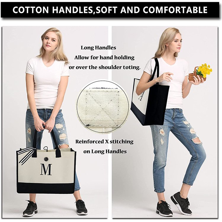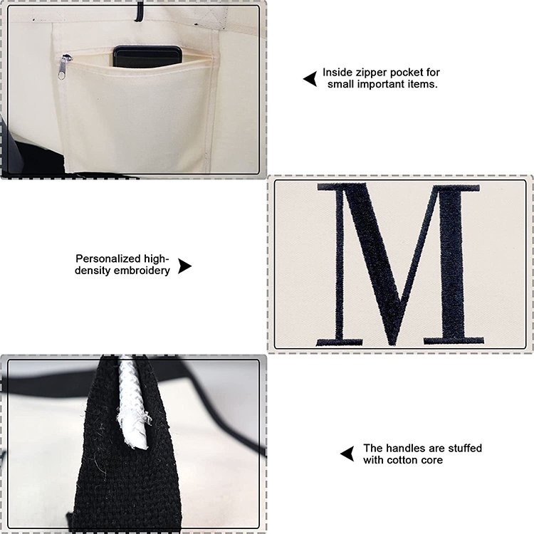 Item Name | Initials Personalized Canvas Tote Bag Embroidered Bridesmaid Gift Teacher Mother Birthday Wedding Monogram Large Beach Tote Bag |