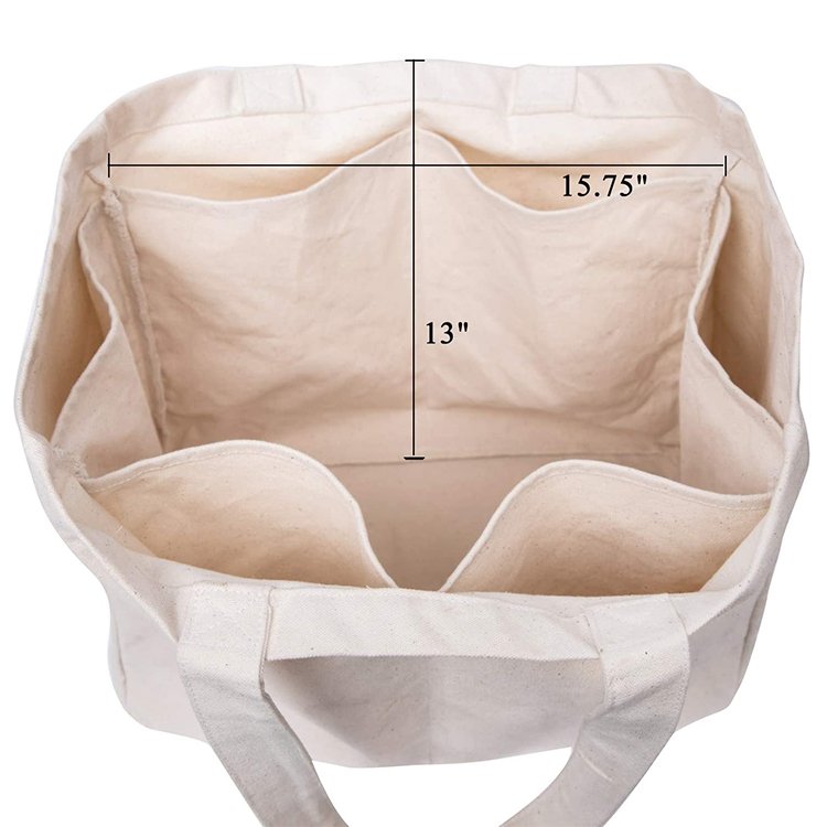 Customized Luxury Recycled Plain Heavy Duty Weight White Woman Tote Handbag Fashion Tote Cotton Canvas Bag With Pockets