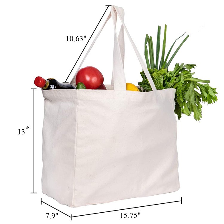 High Quality Custom Printed Logo Extra Large Shopping Bag Oversize Shopping Cotton Canvas Shopping Tote Bag With Pocket
