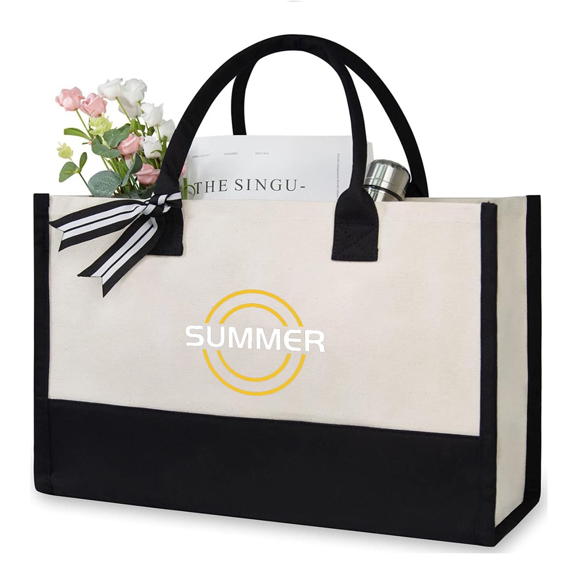 New Design Eco Friendly Custom Logo Waterproof Reusable Large Beach Cotton Canvas Shopping Tote Bag For Summer