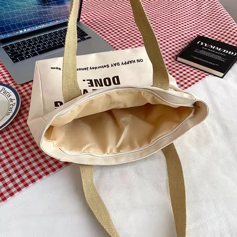 Item Name | Original Large Capacity Custom Logo Letter Cotton Canvas Tote Bag with Pocket Zipper |