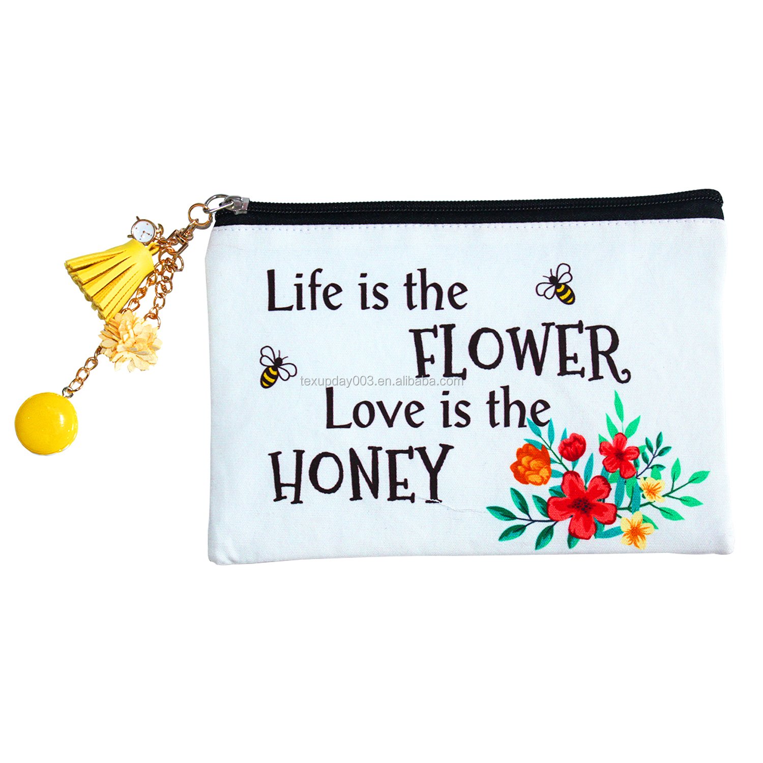 Wholesale Zipper Makeup Bag Eco-Friendly Cotton Canvas Accessory Pouch Double Sided Cosmetic Bags