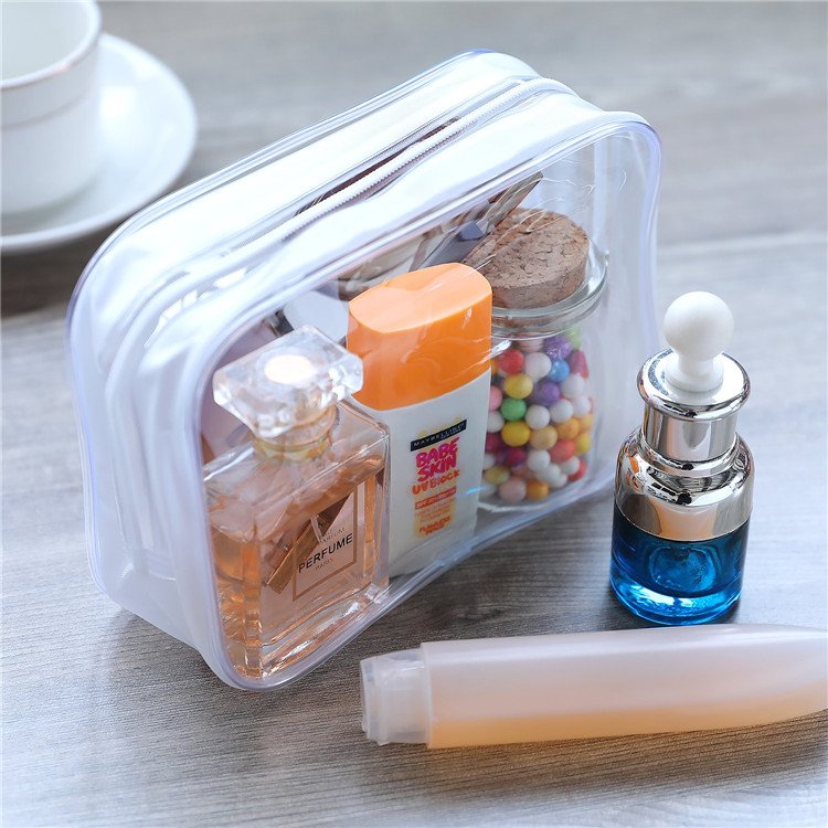 Promotional Travel Luggage Custom Clear Transparent PVC Travel Toiletry Make Up Cosmetic Pouch Bag