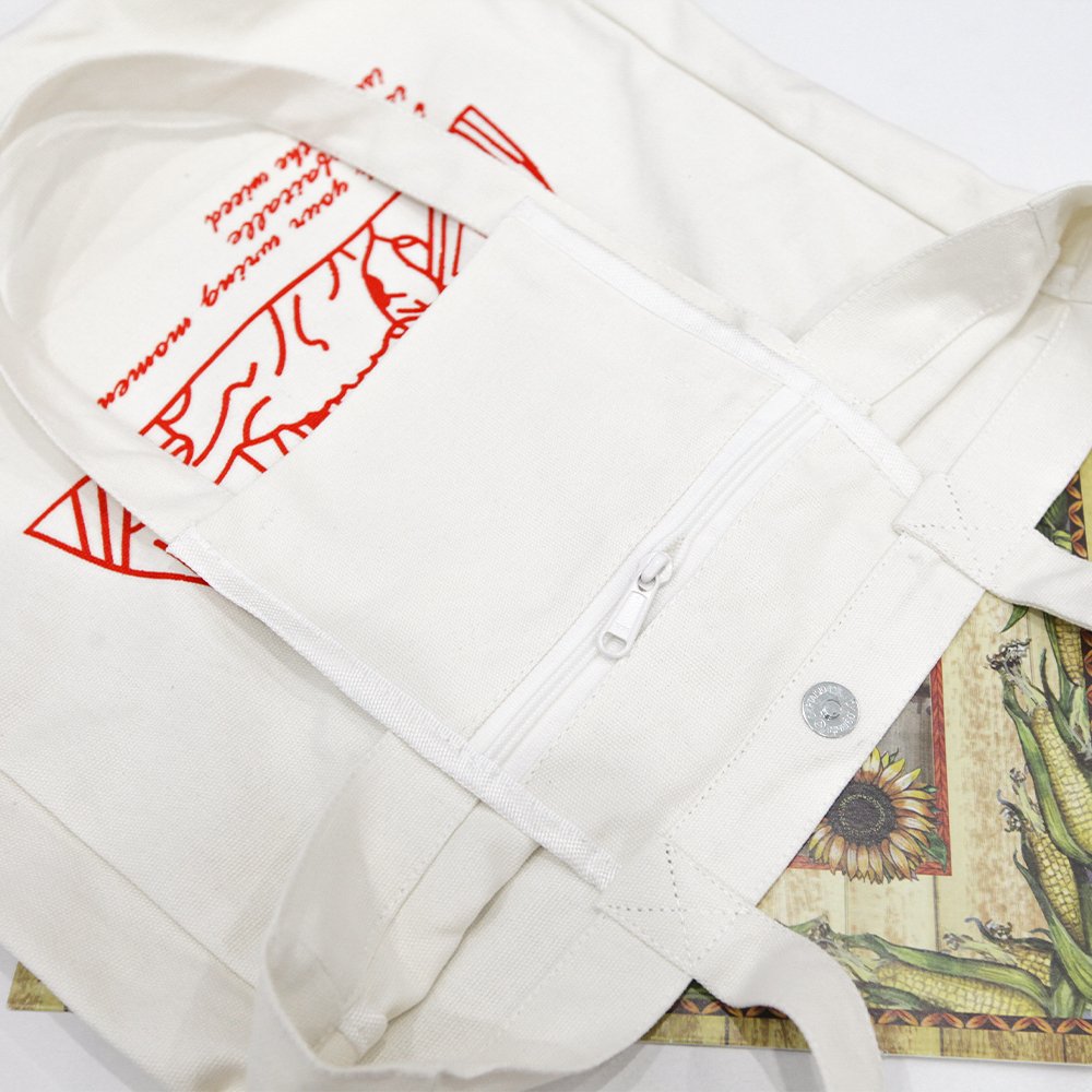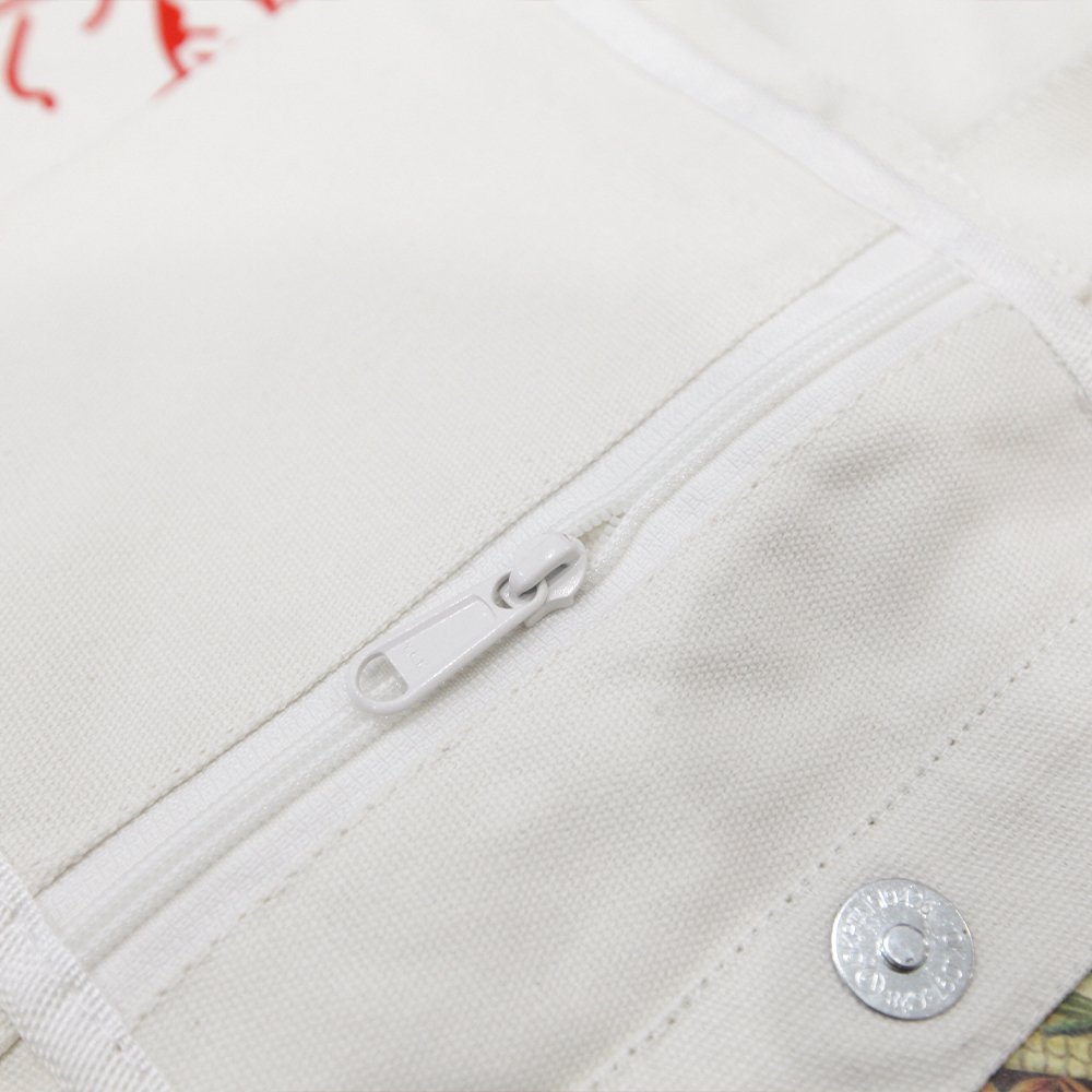 Custom Print Logo Cotton Large Shopping White Canvas Tote Bag With Pocket And Zipper