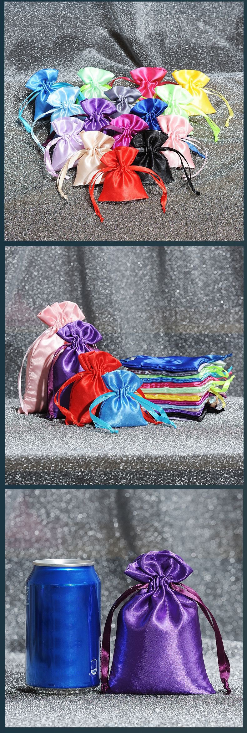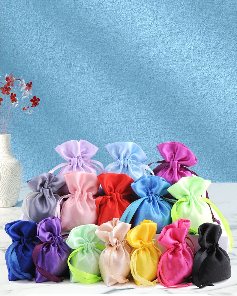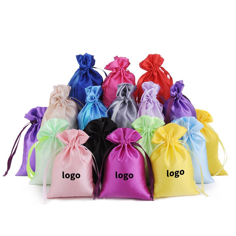Item Name | Top Quality Custom Print Logo Pouch Candy Color Silk Satin Cloth Drawstring Dust Jewelry Bag |
