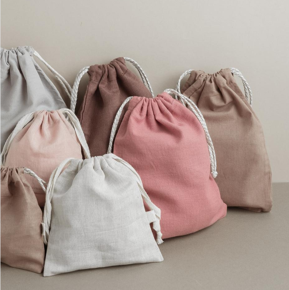 Wholesale Cheap Custom Logo Eco Printed Cotton Linen Muslin Candle Soap Pouch Eco Friendly Gift Drawstring Bag