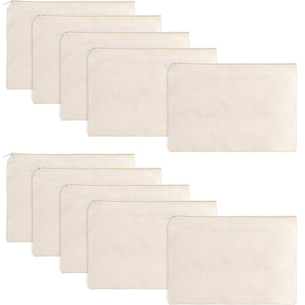 Wholesale Blank Plain Pencil Pouch Custom Cosmetic Bags Cotton Canvas Pencil Cases With Zipper