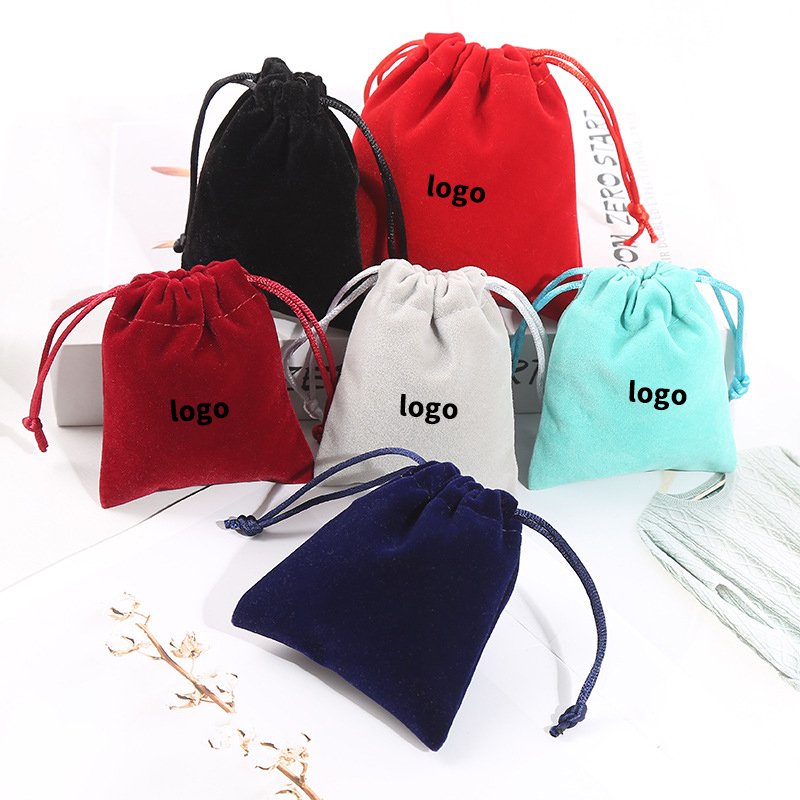 Wholesale Custom Logo Gift Dust Bags Necklace Package Pouch Velvet Jewelry Packaging Pouch Drawstring Bag