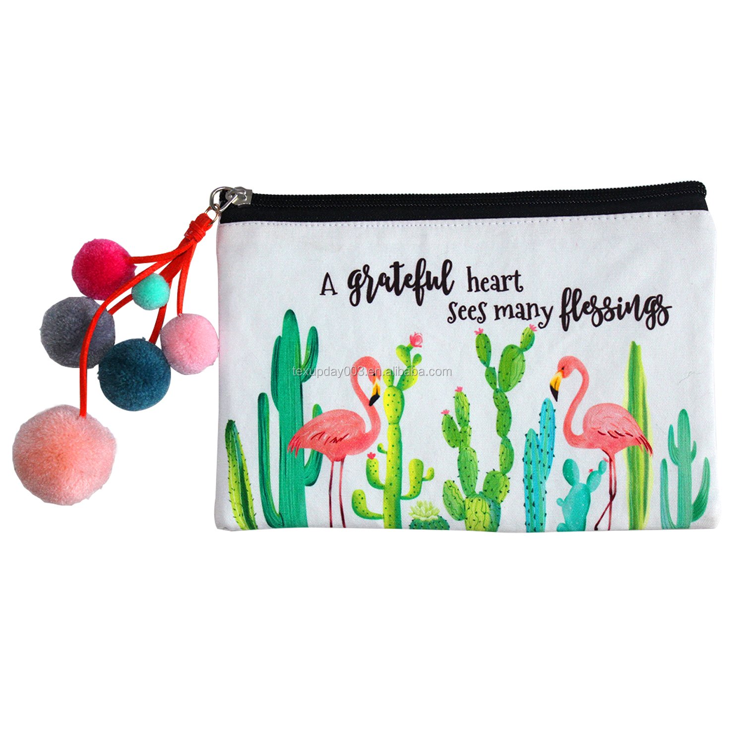 Custom Design Fashion Travel Zipper Cotton Canvas Cosmetic Makeup Bag Pouch