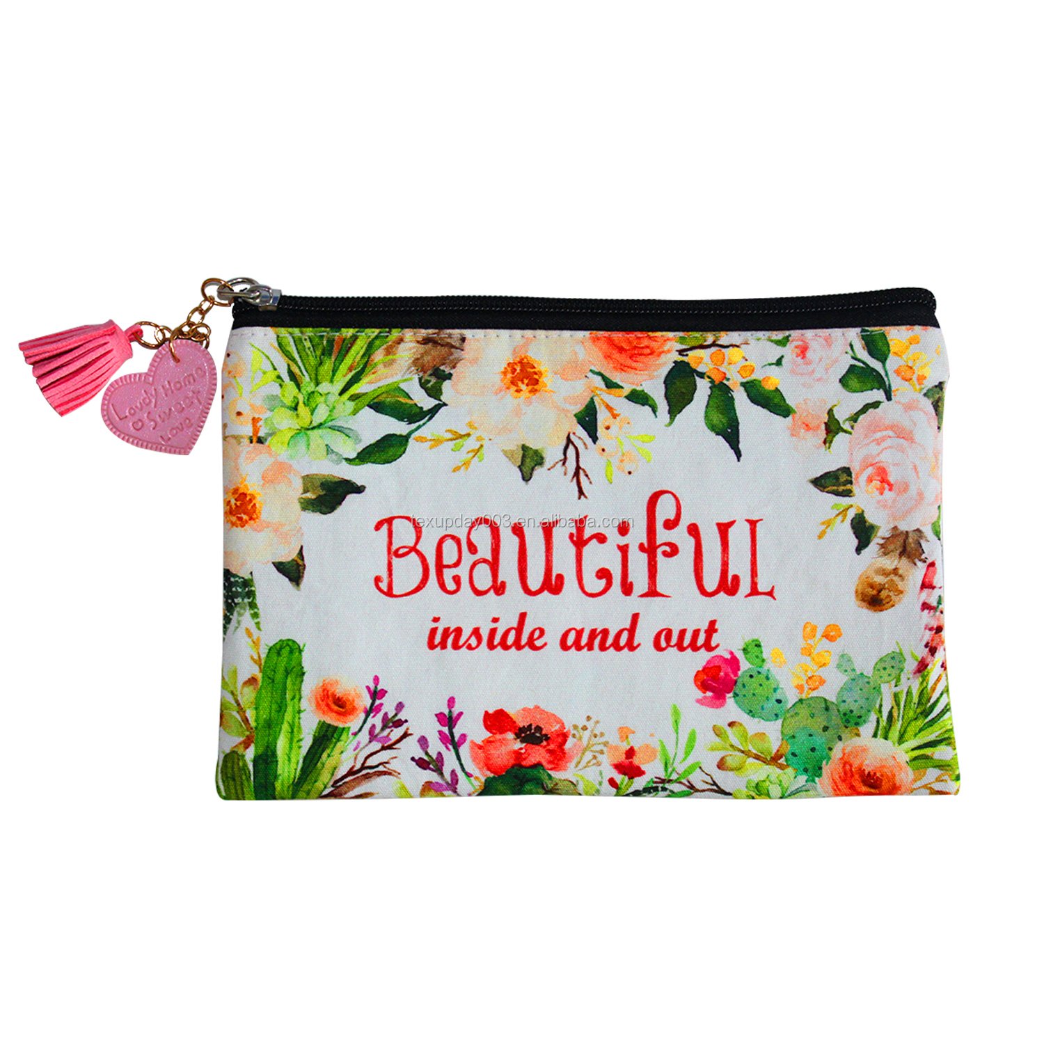 Wholesale Customized Printed Beauty Polyester Zipper Travel Makeup Cosmetic Pouch Bag