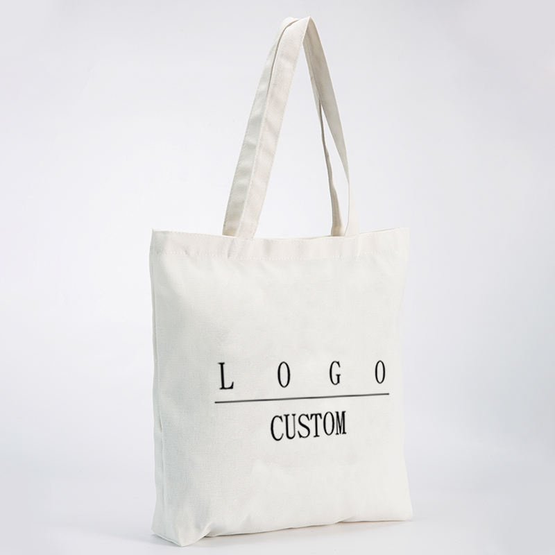 Custom Print Logo Own Design Reusable Plain Pocket And Zipper Cotton Large Shopping White Canvas Tote Bag