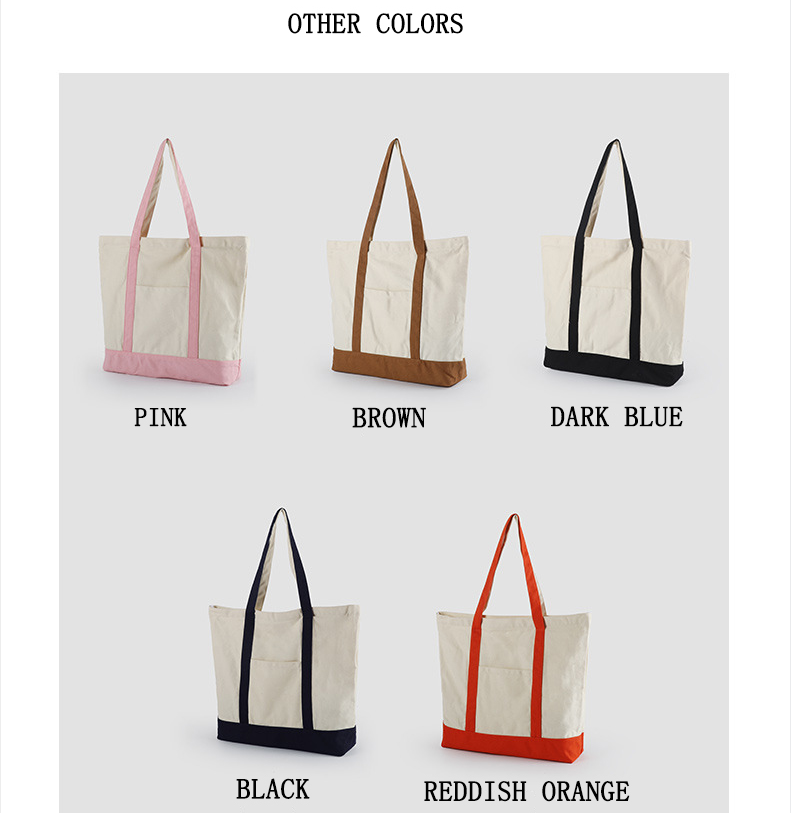 Custom Print Logo Cotton Large Shopping White Canvas Tote Bag With Pocket And Zipper