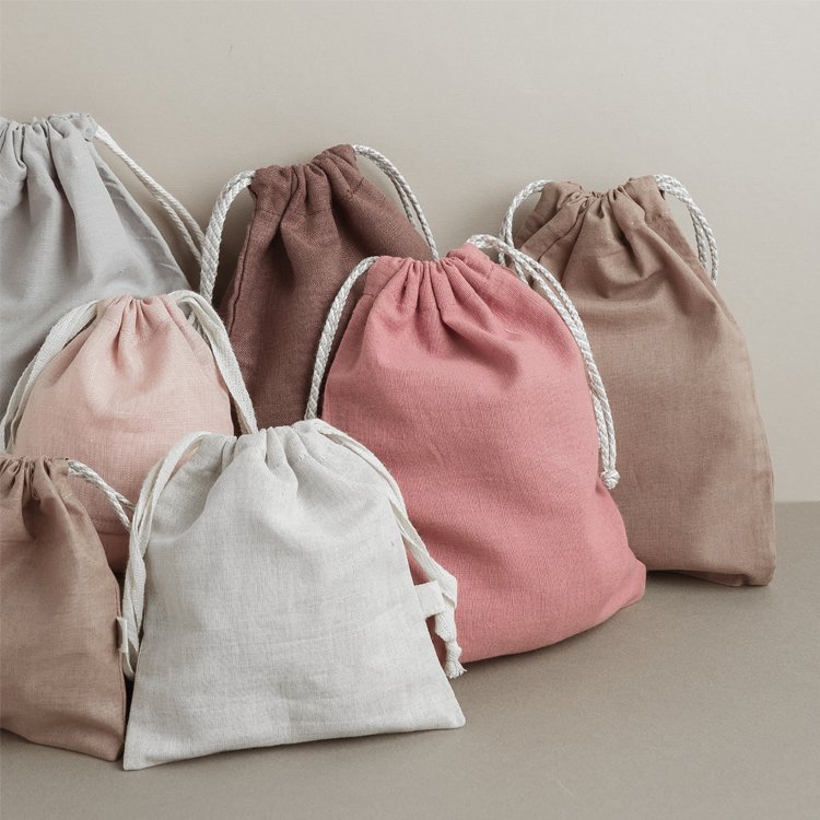 Hot Sale Eco Reusable Organic Cotton Canvas Linen Jewelry Muslin Drawstring Bag Pouch With Custom Logo Printed