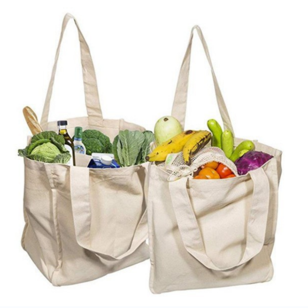 Wholesale Blank Plain Reusable Supermarket Groceries More Inner Pouch Extra Large Capacity Cotton Canvas Shopping Tote Bag